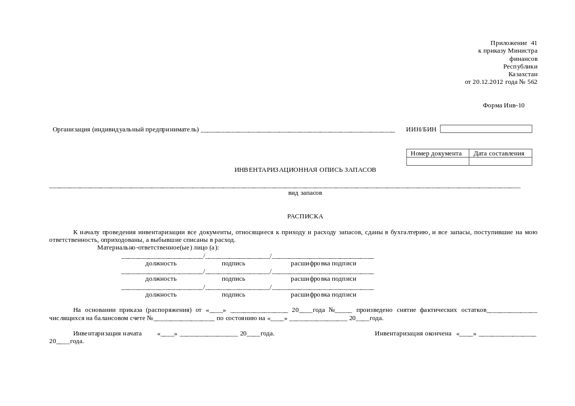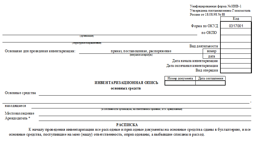 Унифицированная форма № ИНВ-10 утверждена постановлением Госкомстата России от 18.08.98 № 88