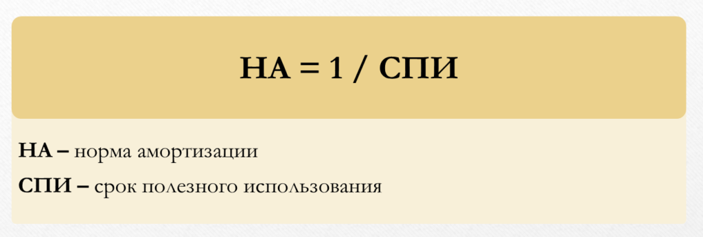 Ее расчет зависит от применяемого способа расчета. В общем виде формула нормы амортизации выглядит так: