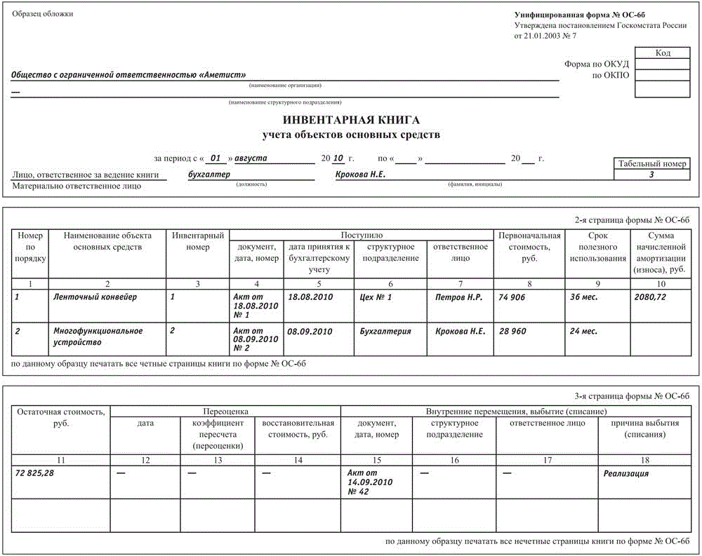 Инвентарная книга учета объектов ОС