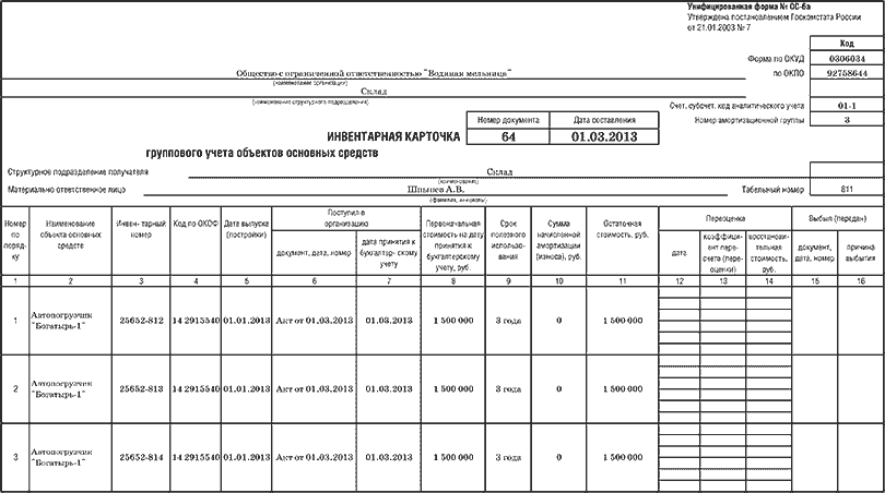 Скачать карточку учета объектов ОС можно здесь, а группового учета — тут.