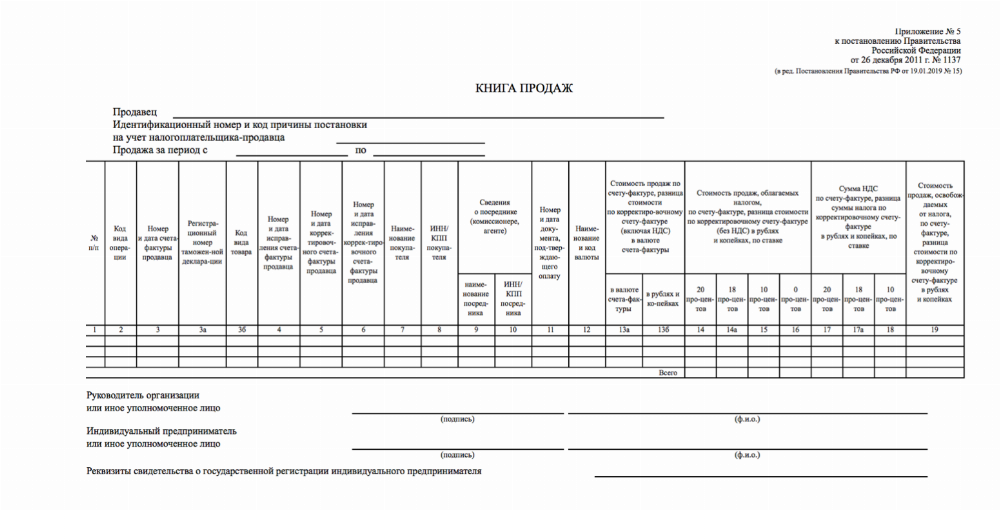 В шапке заполняется наименование продавца, ИНН/КПП и налоговый период.