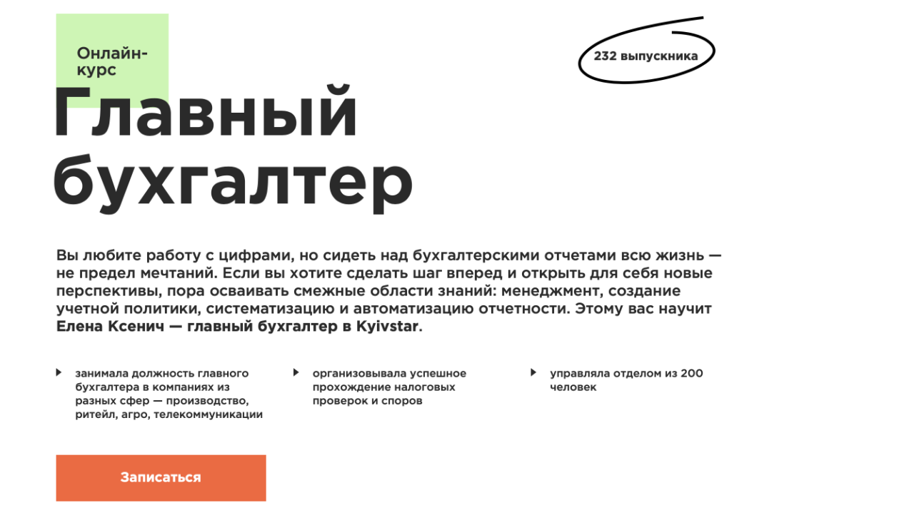 Видеокурс рассчитан на 4 месяца, по окончании выдается сертификат. Доступны 3 программы – для директора (что называется, для чайников), для бухгалтера по зарплате (для начинающих карьеру), для бухгалтера по УСН. Проект создан разработчиками Контур.Бухгалтерии и обещает практическое руководство экспертов. Уроки проиллюстрированы комиксами, наглядными ситуациями практиков. Знания сгруппированы в 8 уроков, где в каждом содержится видео и проверочные тесты с заданиями.