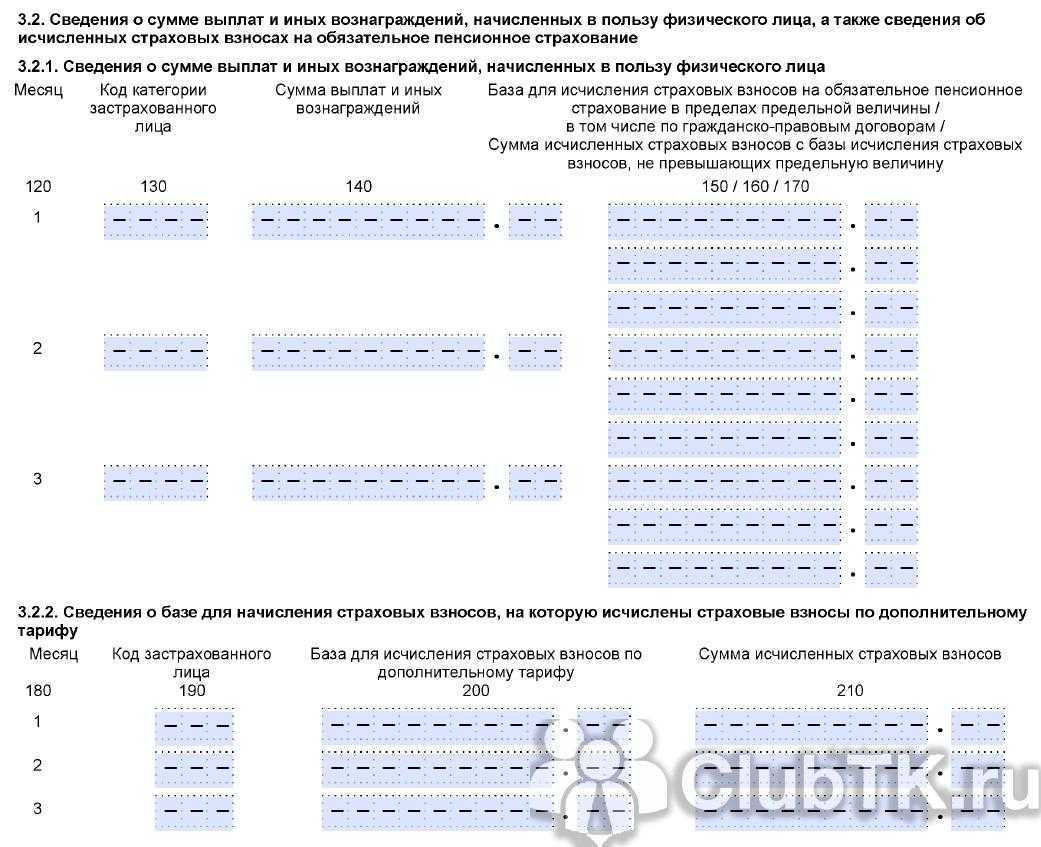 - В первом разделе 3 по строке 010 ставится порядковый номер корректировки, в строке 040 данного раздела ставится номер из первичного отчета, отчество — как в первичном и обнуляются показатели в подразделе 3.2.