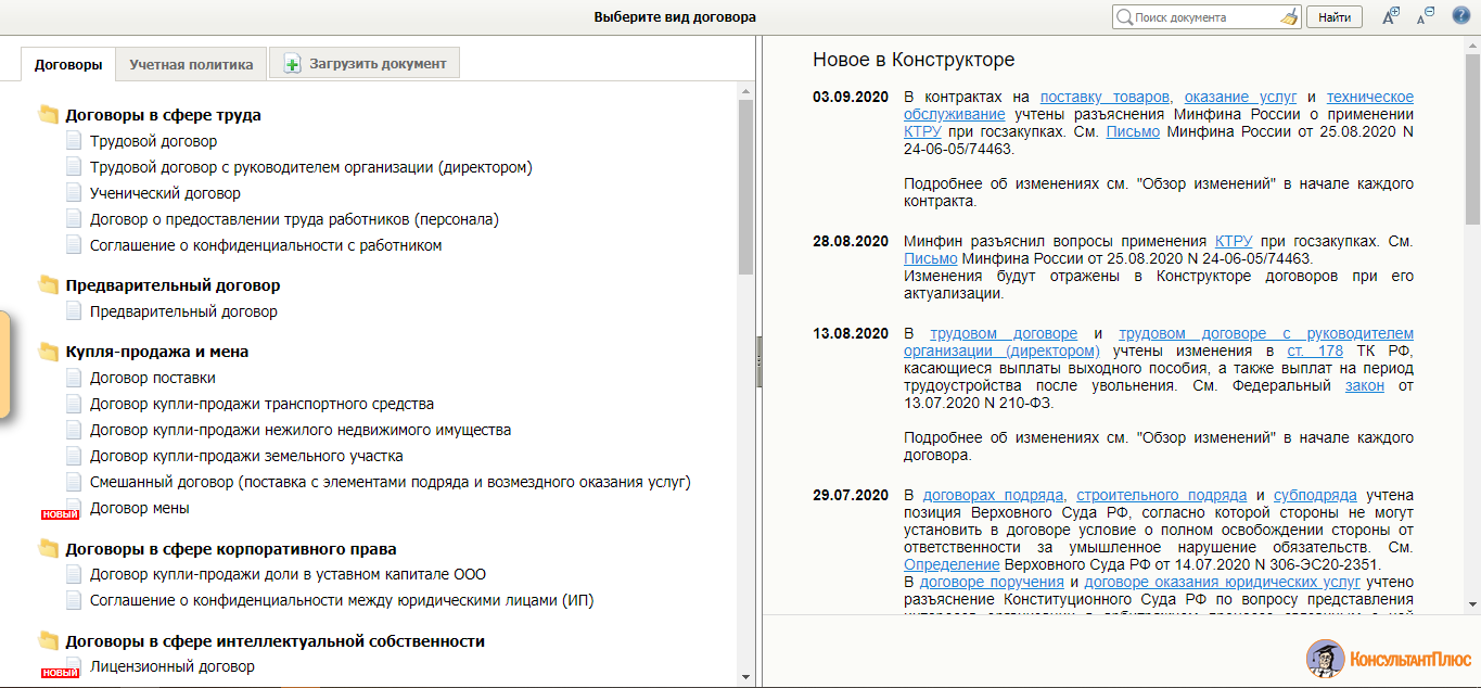 Бесплатно составьте любое соглашение или «допник» с помощью специального конструктора договоров от КонсультантПлюс.