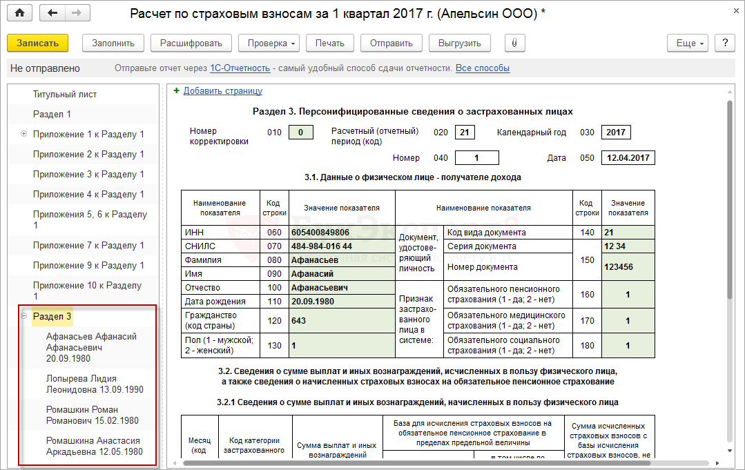 Подраздел 3.1 «Данные о физическом лице» — эта информация заполняется на основании данных справочника Сотрудники;