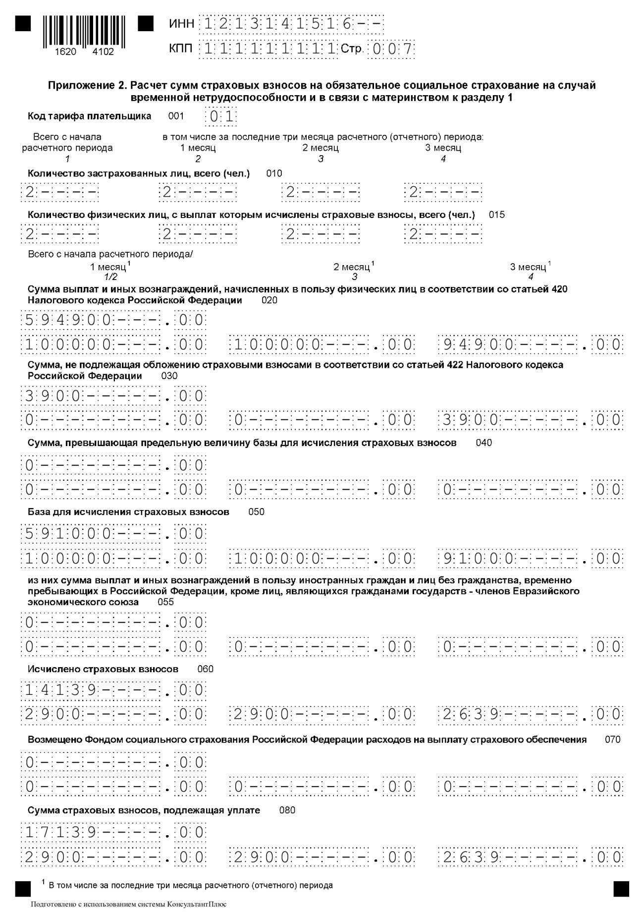В Приложении N 2 приводится расчет сумм страховых взносов на обязательное социальное страхование на случай временной нетрудоспособности и в связи с материнством.