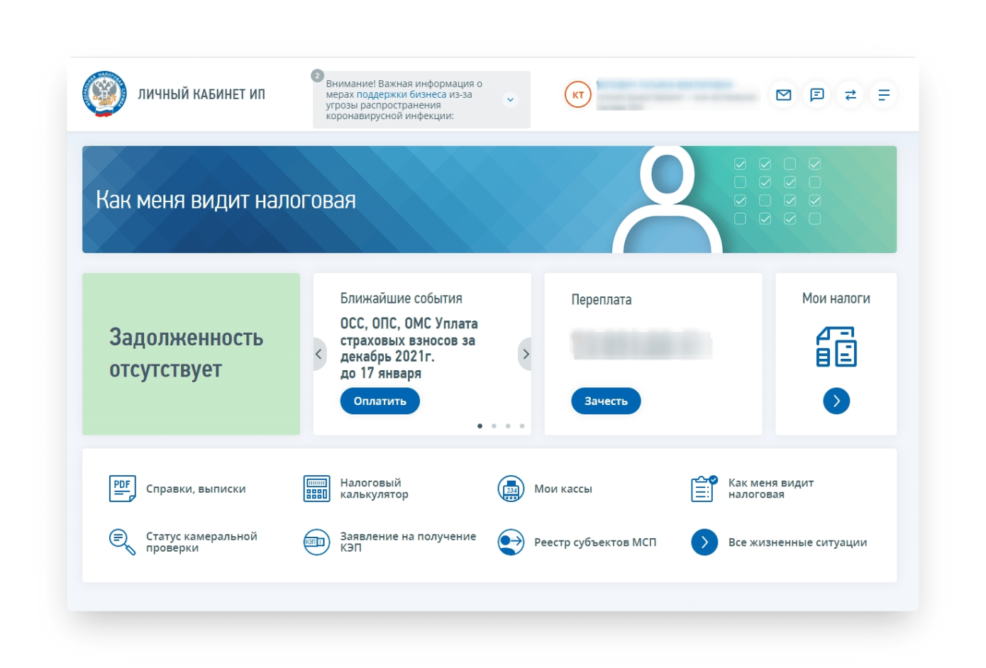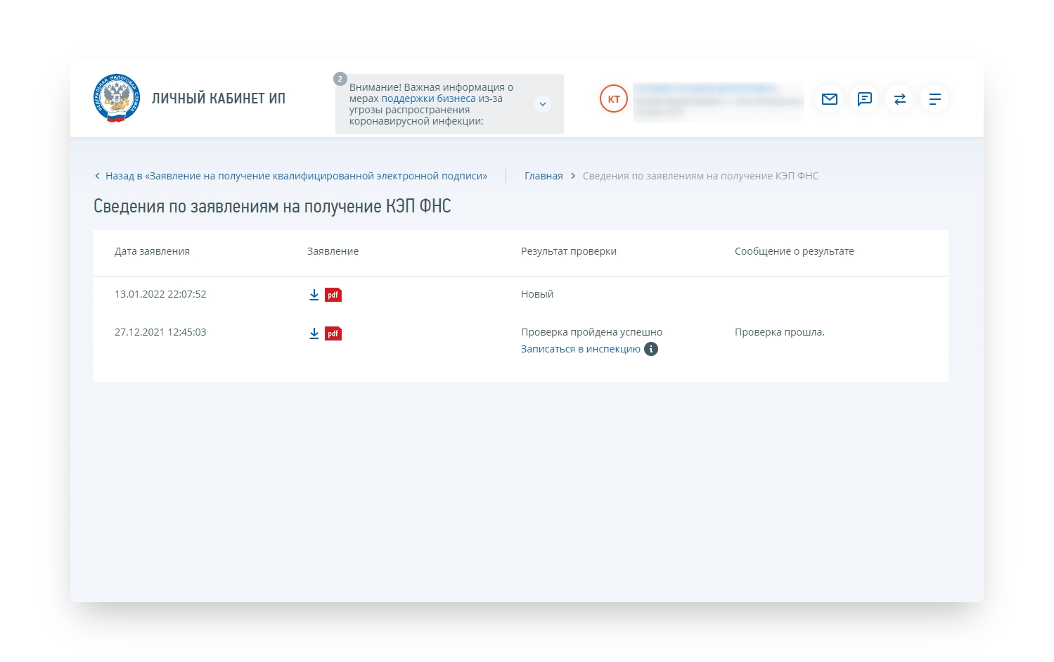 3. Пройдя проверку, предприниматель отправил заявку.