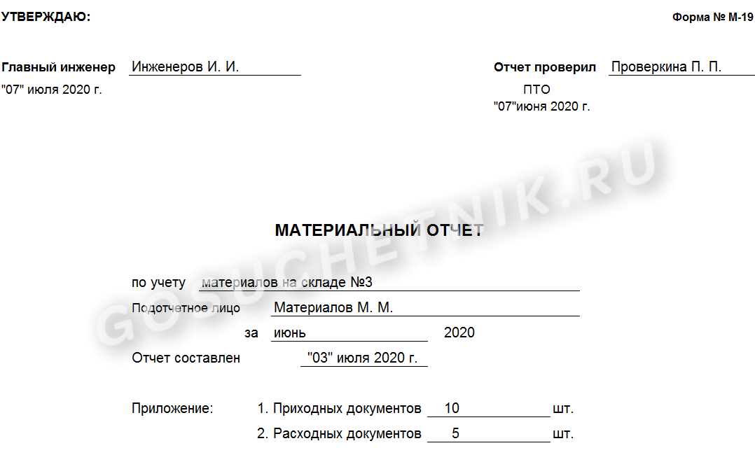 Инструкция, как заполняется материальный отчет по форме М-19 в 2020 году, включает описание заполнения всех его страниц.