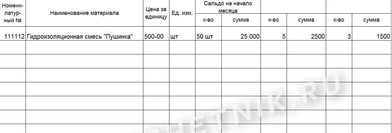 Иногда в деятельности организации складывается так, что за отчетный период перемещений по каким-либо материалам не происходит, но по правилу они все равно должны фиксироваться в отчетном документе для того, чтобы в полной мере выразить сведения об объеме материалов, хранящихся в складских помещениях.