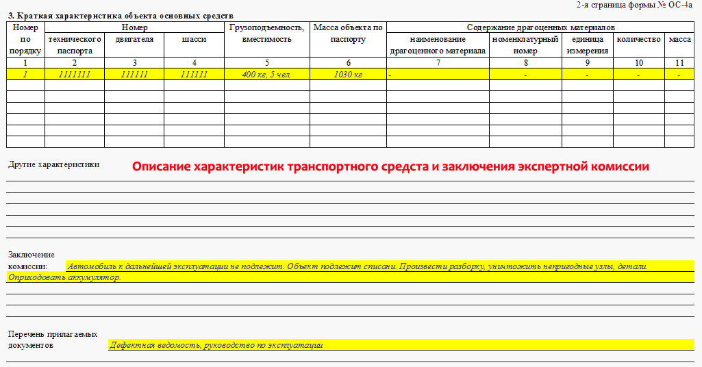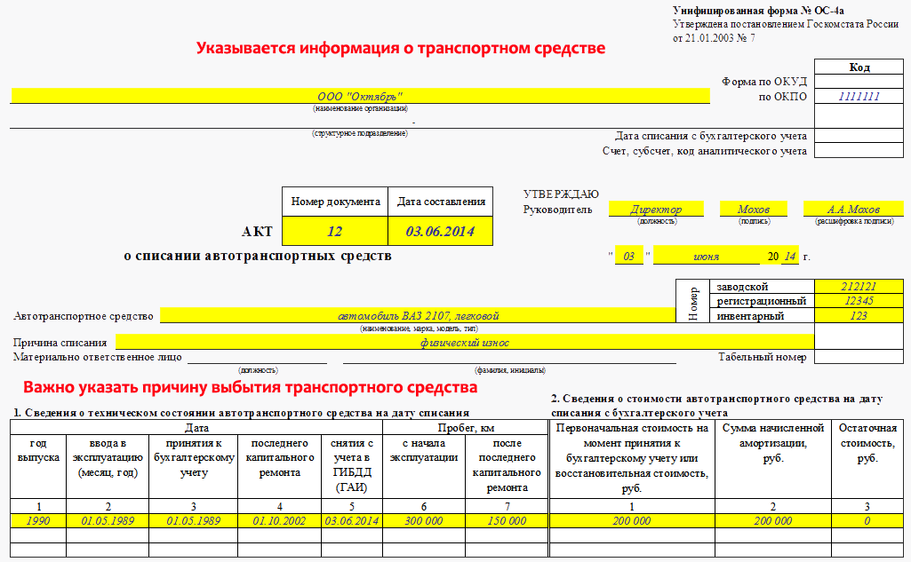 - Как заполнить акт о списании транспортного средства ОС-4А?