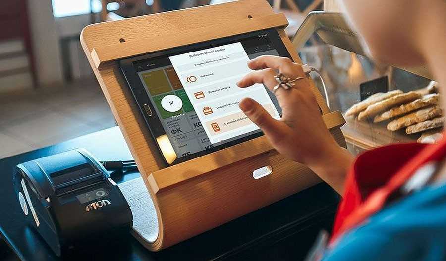 - Дисплей любого устройства отображает информацию. Недорогой вариант — ваш ноутбук, планшет или старый компьютер. Если нет подходящей техники, купите POS-терминал. Например, вот такой.