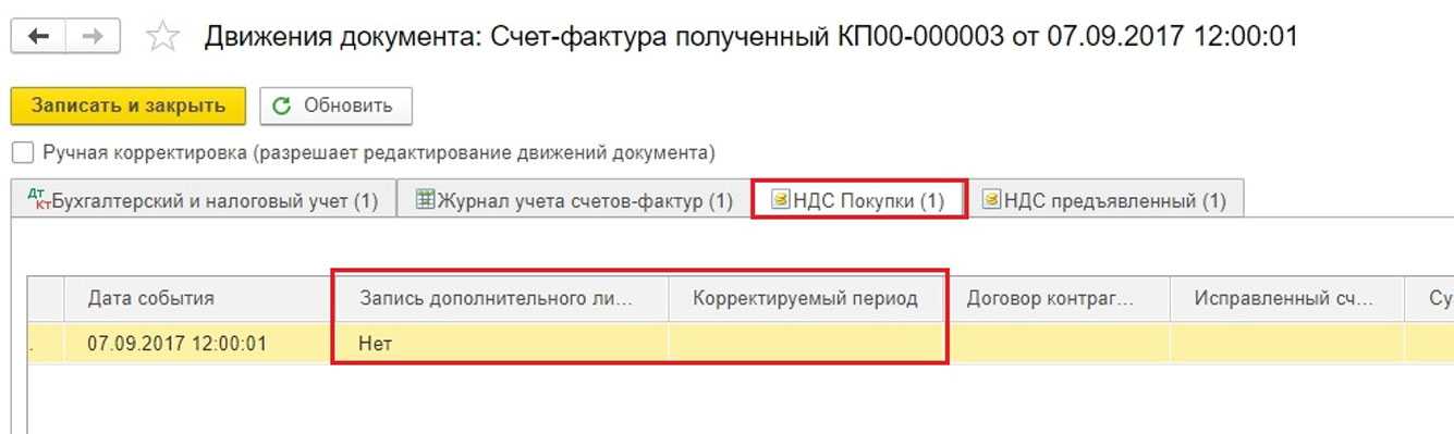 Рассматривается документ счет-фактура (первичный, не сторно). В нем имеются данные, по которым формируются доп. листы книги покупок.