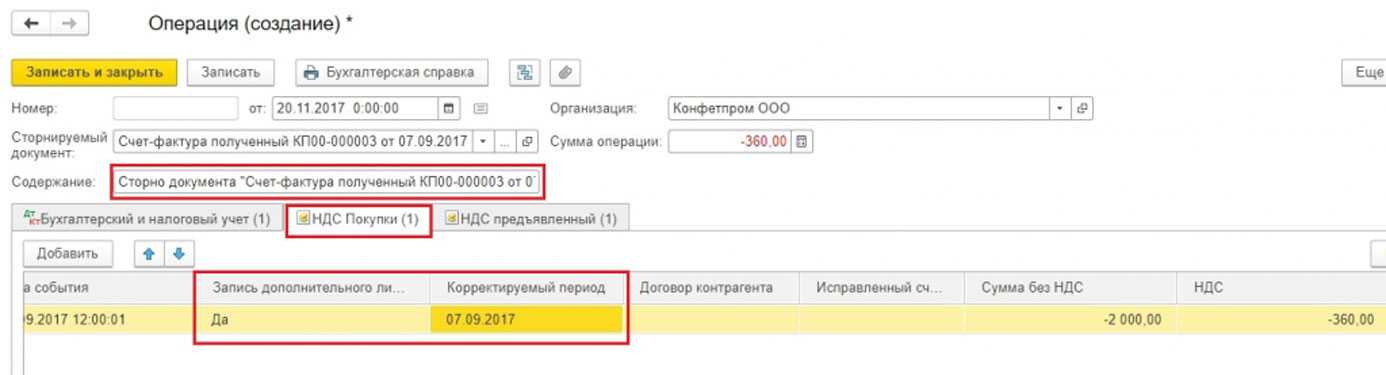 Также обозначенный регистр можно заполнить автоматически, когда будет проводиться сторнирование счета фактуры.