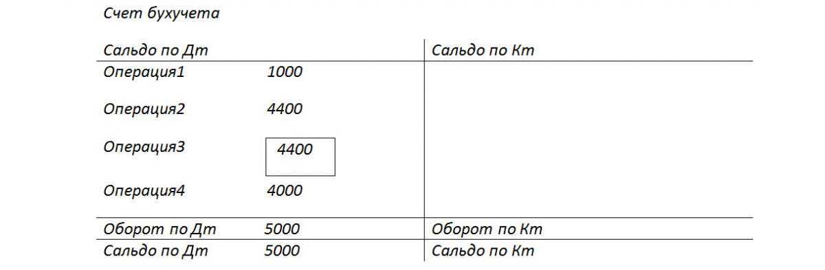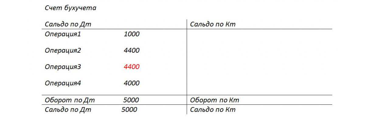 Пример. Обороты по бухгалтерскому счету: правильная сумма 1000, а вместо суммы 4000 было указано 4400 (операция с рис. 2).