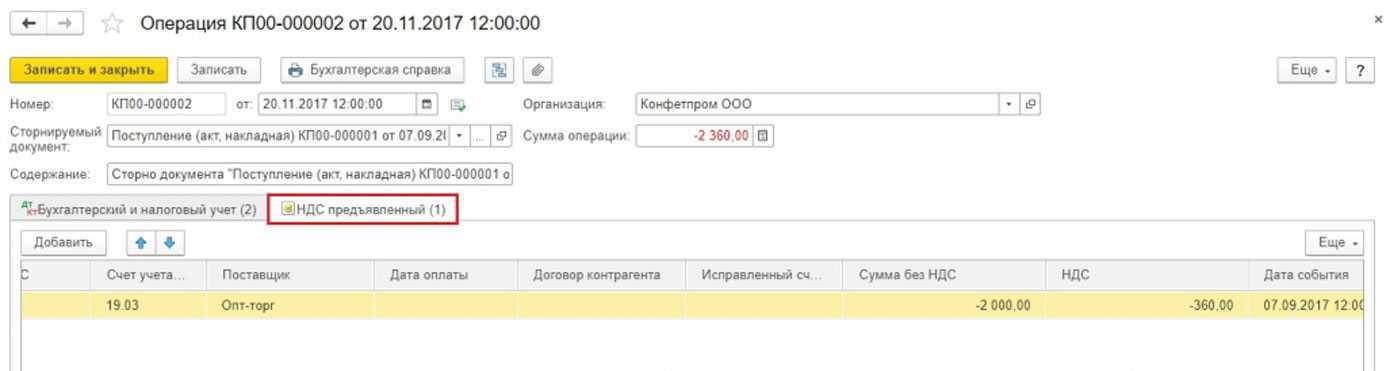 Как сделать сторно в 1С 8.3 — поступление отражено ошибочно