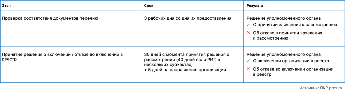 Включение организации в реестр производится с 1-го числа месяца, следующего за месяцем, в котором было принято соответствующее решение.