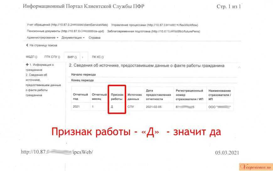 Сведения из Пенсионного фонда РФ (ПФР) направленные в ЦЗН выглядят так: