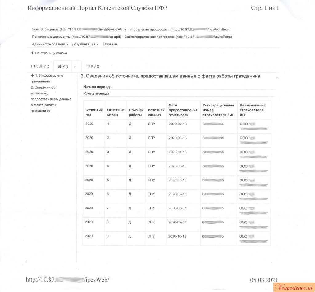 Сведения из ПФР показанные ниже, можно получить только в Пенсионном фонде. Центр занятости их в таком виде вам не распечатает.