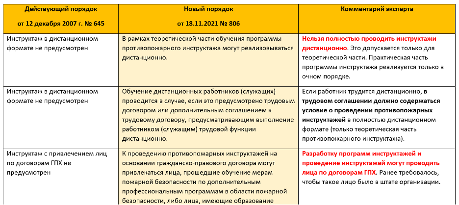 Что изменится в порядке обучения по пожарной безопасности с 1 марта 2022 года: сравнительная таблица