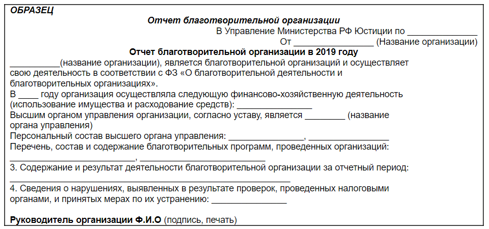 Благотворительная организация дополнительно представляет в Минюст России отчет о своей деятельности, содержащий сведения о:
