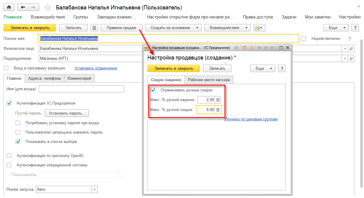 Также есть возможность контролировать соблюдение установленных правил продажи. Осуществить продажу с отклонениями можно только при дополнительном согласовании с руководством организации или ответственным лицом.