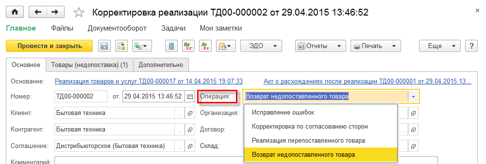 | 1 | Уменьшить реализацию, учесть при инвентаризации | При фактическом отсутствии части товара, поступившего покупателю используется этот вариант. Может оказаться так, что продукция попросту не была отгружена Вашей компанией и на дату проведения инвентаризации он может быть у Вас выявлена |