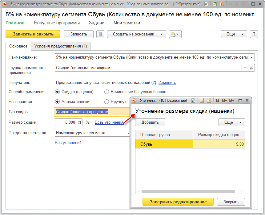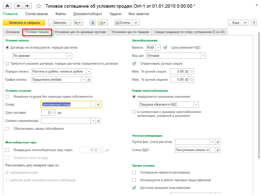 Главной задачей фиксации условий продаж в соглашении является автоматический контроль соблюдения этих условий при продаже товаров клиенту.