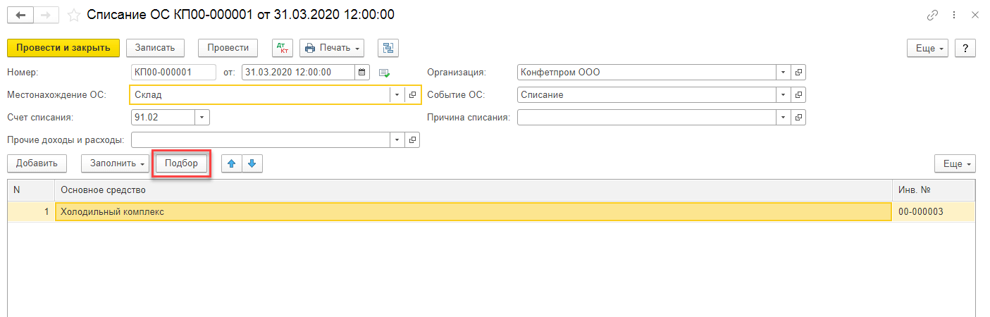 В результате проведения списания получится проводка в 1С Бухгалтерия 8.3: