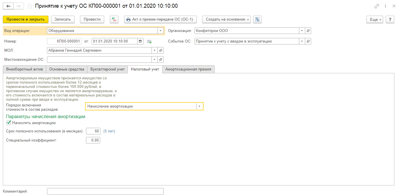 Поступление ОС в 1С 8.3 — пошаговая инструкция