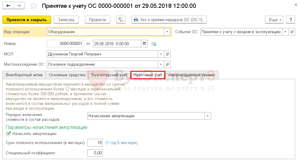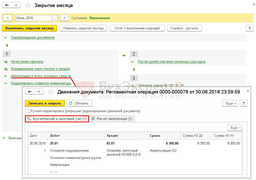 См. также Почему не начисляется амортизация в 1С 8.3 при закрытии месяца?