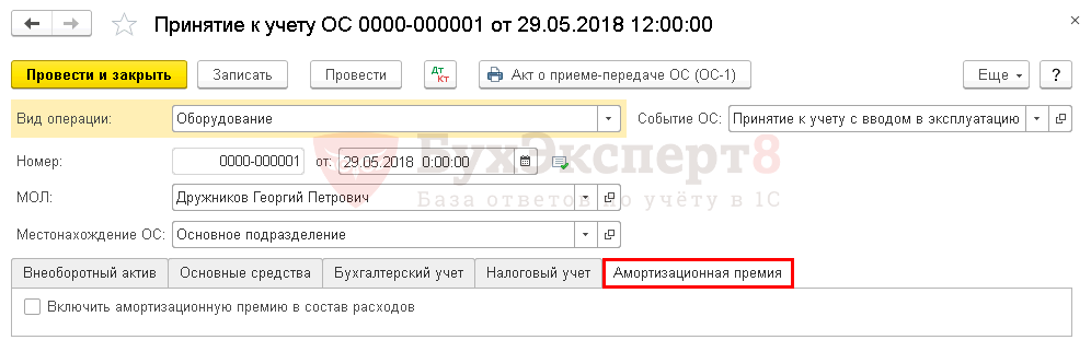 Если применяете амортизационную премию, то отметьте флажок на вкладке Амортизационная премия и задайте ее размер.