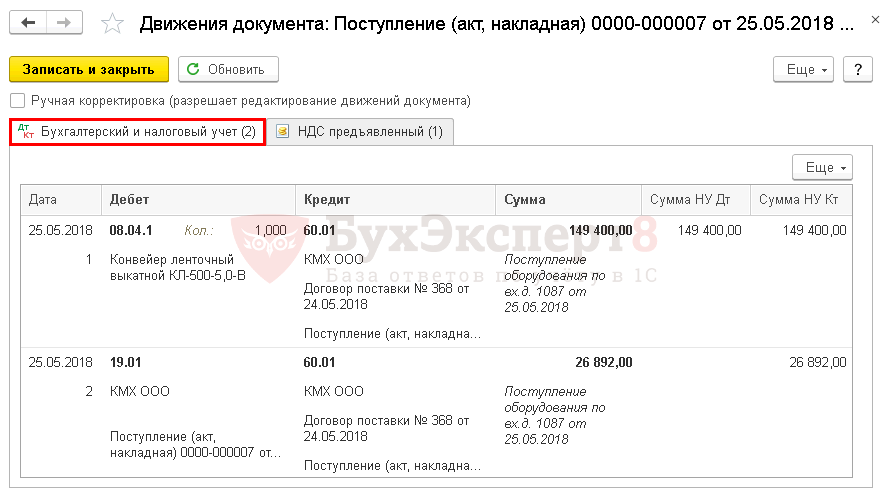 Проводки + документы 1С 8.3