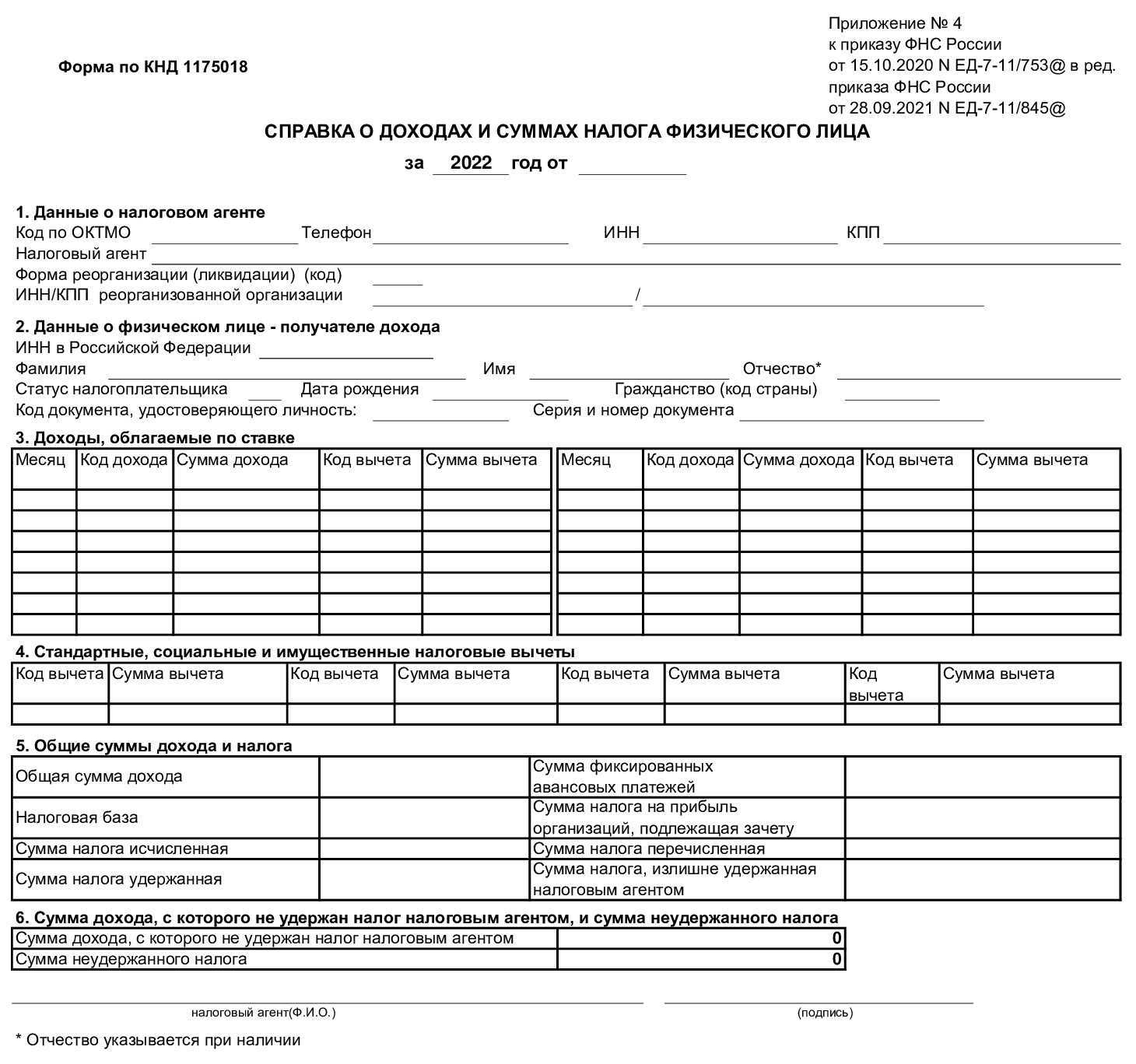Бланк расчета и приложения к нему утверждены Приказом ФНС России № ЕД-7-11/753@ от 15.10.2020. Отдельная отчетность 2-НДФЛ в 2022 году для налоговых агентов не предусмотрена.