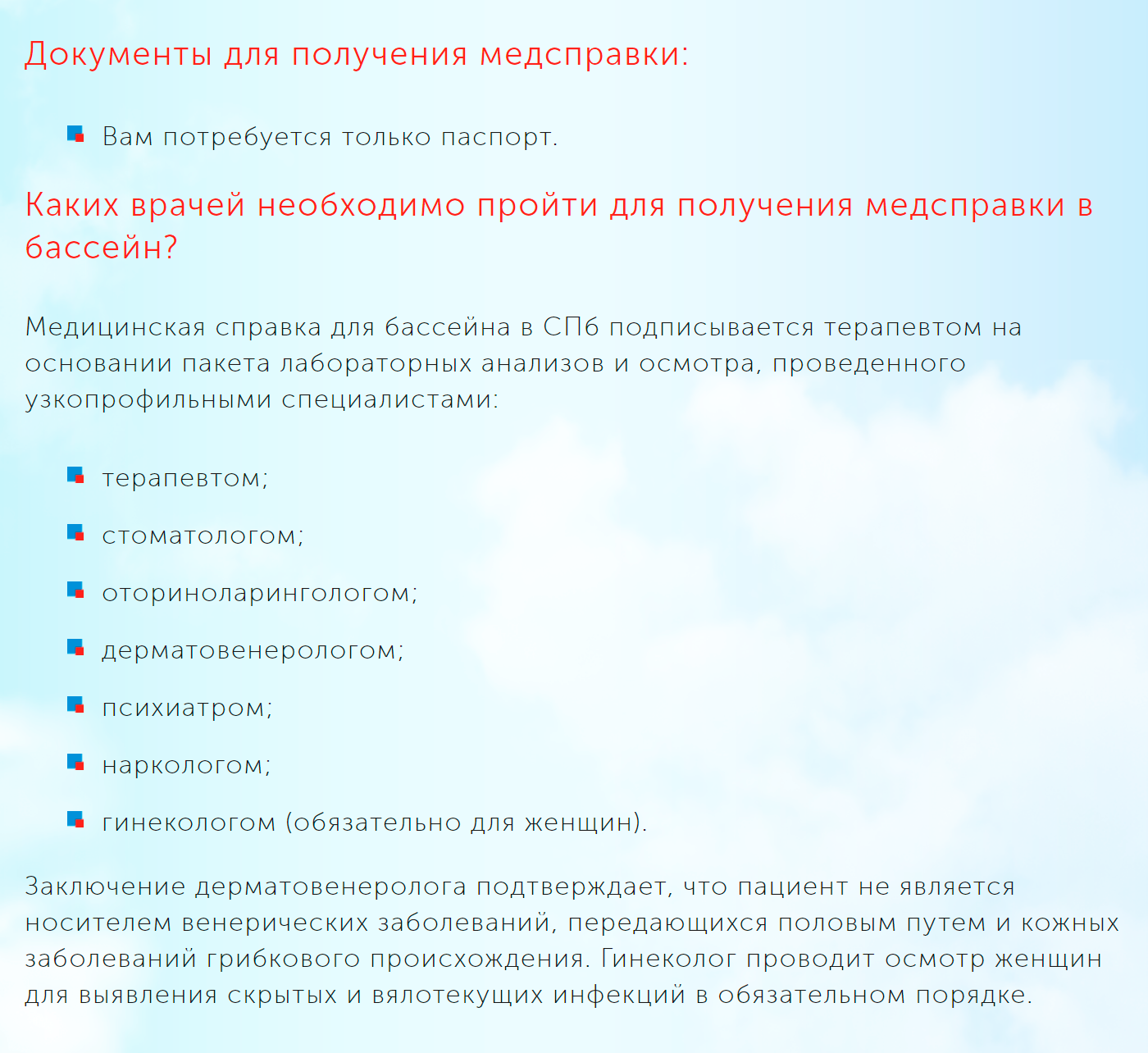 В КАКИХ СЛУЧАЯХ ТРЕБУЕТСЯ СПРАВКА ДЛЯ ПОСЕЩЕНИЯ БАССЕЙНА?