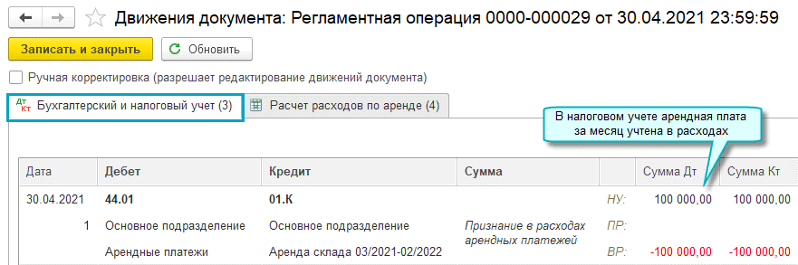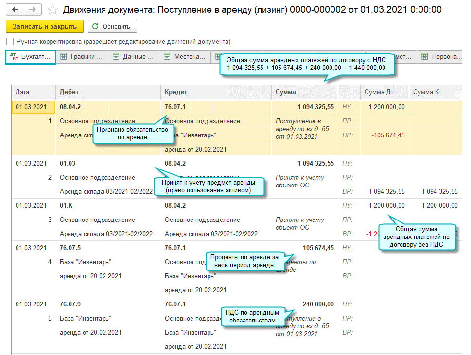 Вариант 2 — учет аренды у арендатора, если признается право пользования объектом аренды