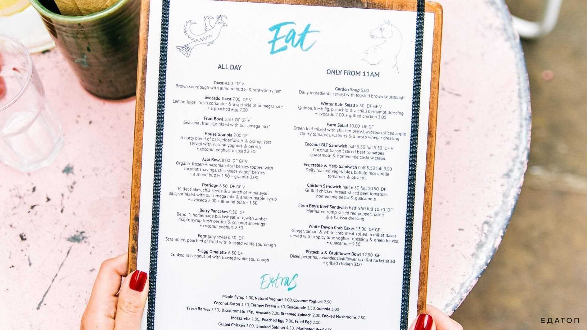 - План-меню, содержащий в себе всю информацию обо всех блюдах и их подробном составе.