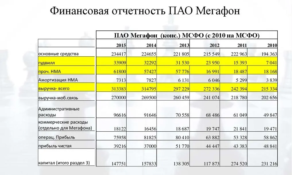Пример финансовой отчетности ПАО Мегафон