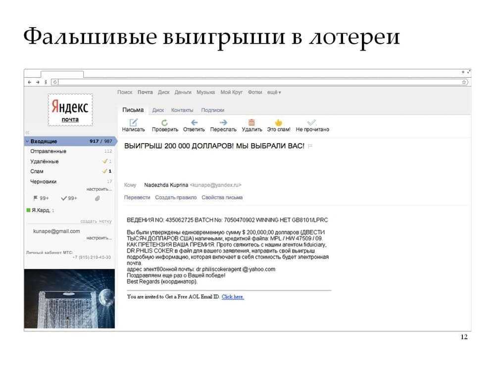 В большинстве своем такие письма рассылаются всем подряд в надежде, что кто-то откликнется. Но бывают и адресные рассылки, направленные именно на определенного человека: популярного блогера, сотрудника значимого предприятия и т. п. Подобные схемы лучше продуманы, и от них непросто увильнуть.