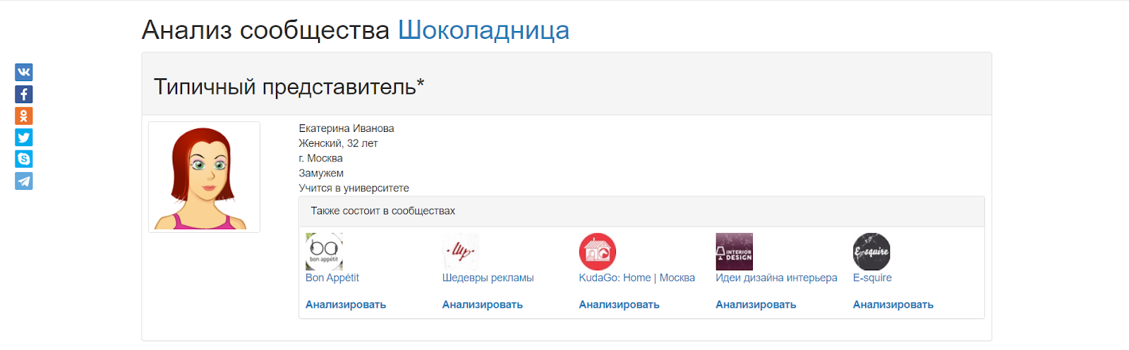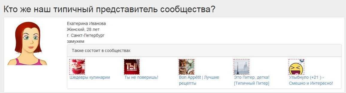 В отчетах сервис показывает своего рода собирательный образ типичного представителя аудитории сообщества (портрет ЦА):
