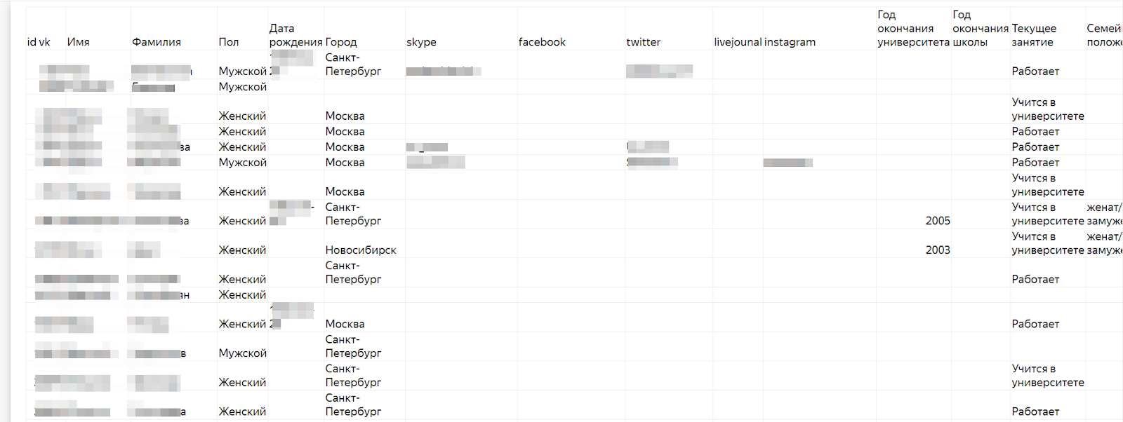 Участников сообщества можно выгрузить в XLSX или CSV (в файле будут id пользователей, имя и фамилия, пол, город и другие данные).