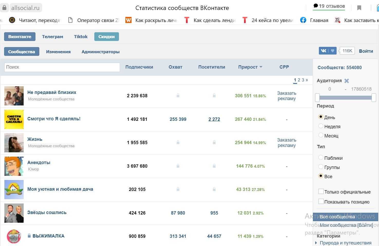 Мы предлагаем Вам список полезных сервисов для аналитики ВК Вашей деятельности: