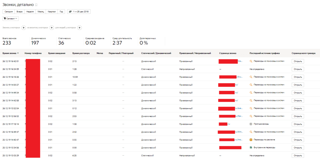Анализ результатов работы Целевого звонка Яндекс