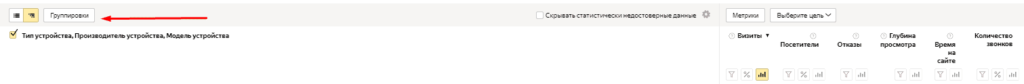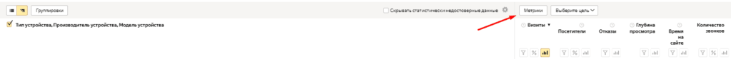 метки со звонками, кликнув на «Метрики».
