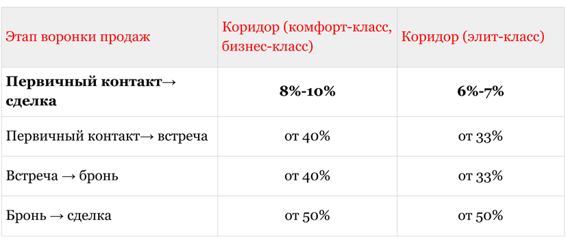 Важно: следите за сроком каждой стадии сделки — как долго клиент висит на стадии первичного контакта до встречи, сколько времени проходит, когда он после встречи принимает решение о бронировании, сколько времени занимает бронирование, до того как клиент заключает сделку. Начните фиксировать эти сроки по менеджерам и типам клиентов — вы сами накопите статистику, по которой сможете замечать отклонения от нормы