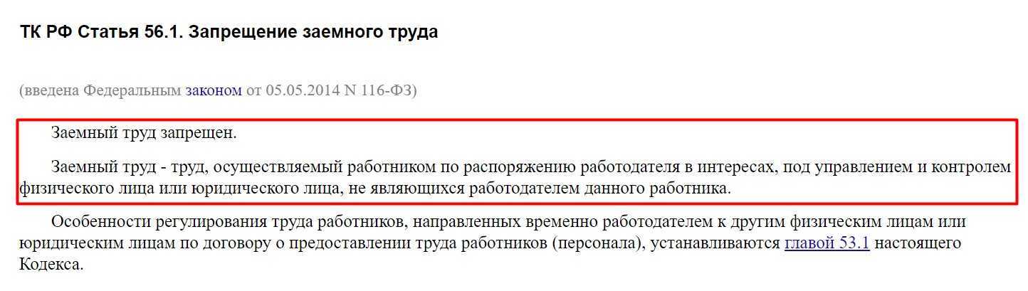 В 2014 году Госдума приняла федеральный закон № 116-ФЗ, статья 56.1 «Запрещение заёмного труда» которого сначала испугала HR-экспертов: