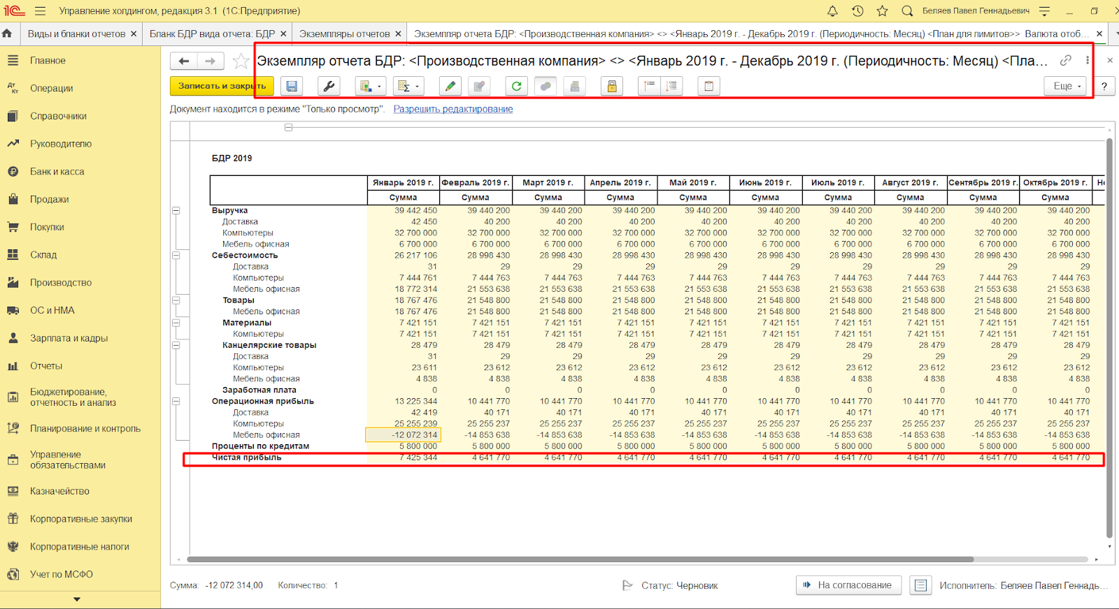 Поскольку прогнозирование прибыли — индивидуальный процесс для каждой отдельно взятой компании в части планирования, то не существует каких-либо готовых решений или отчетов как таковых. Однако через моделирование и комбинацию нескольких инструментов в специальных финансовых разделах программ 1С можно сформировать довольно точный прогноз.