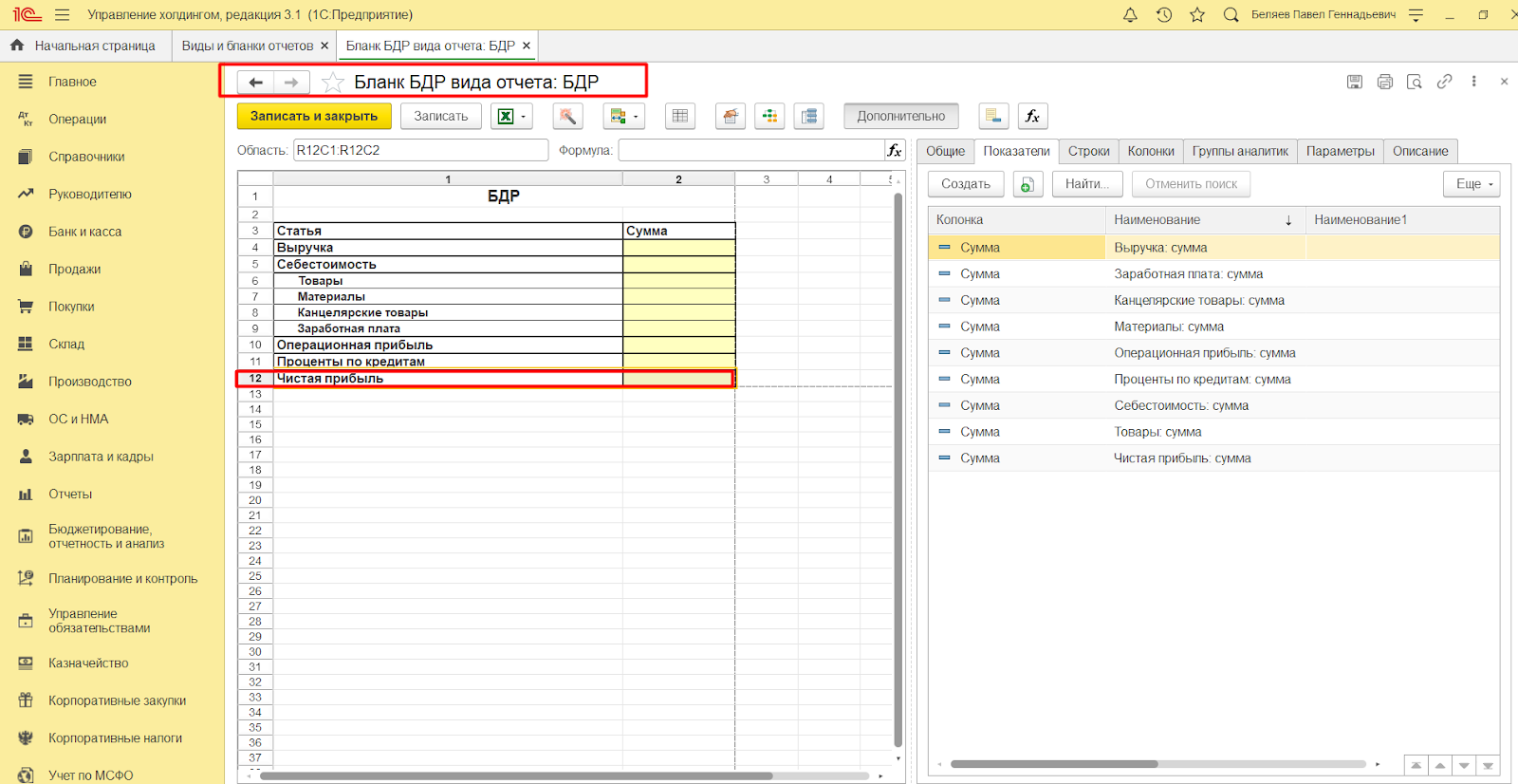 Прогнозирование прибыли в 1С:ERP Управление предприятием