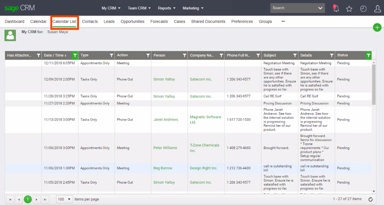 Интерфейс Sage CRM