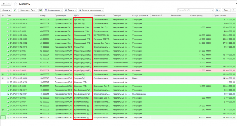 Рисунок 3. Операционные (функциональные) бюджеты на примере программного продукта «WA: Финансист».
