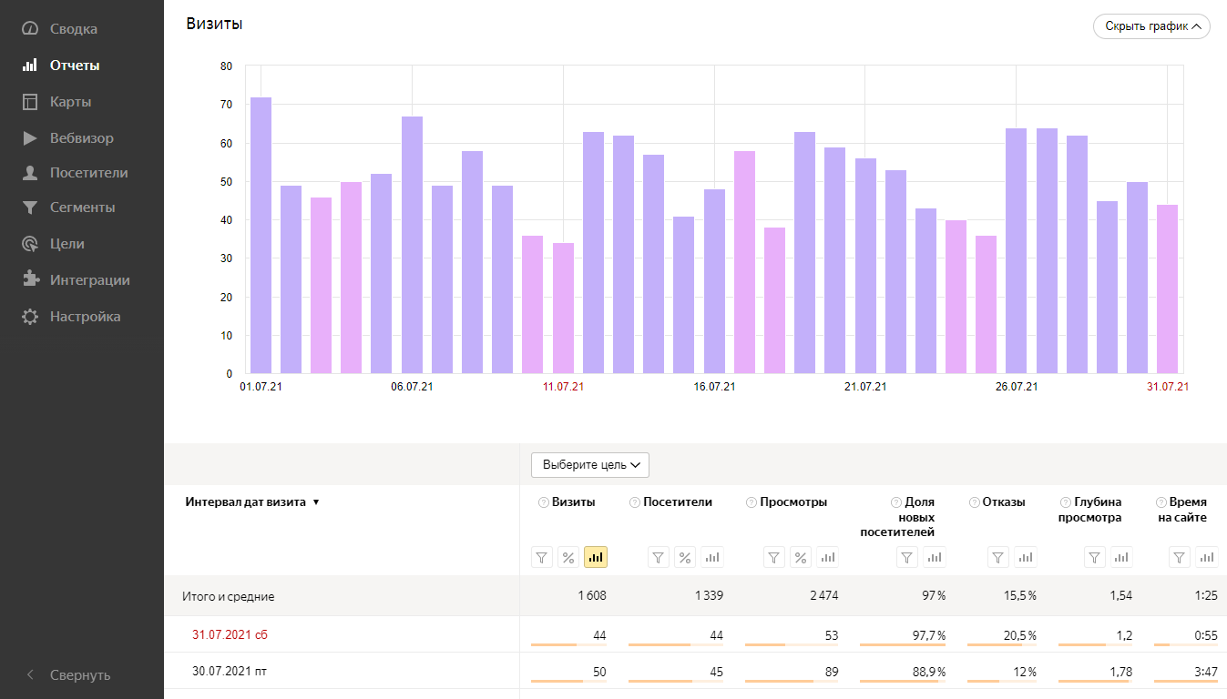 - Рассчитайте понедельный анализ. Затем просмотрите показатели на каждый день, в том числе и выходные дни.
